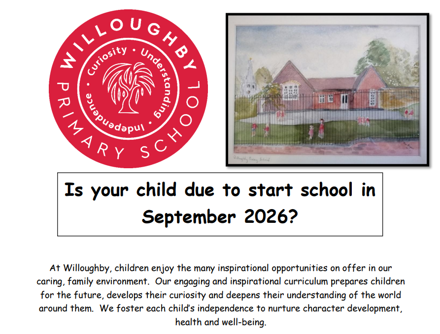 Willoughby is a local authority maintained school, all applications whether for Reception or in-year must be made through Nottinghamshire County Council.